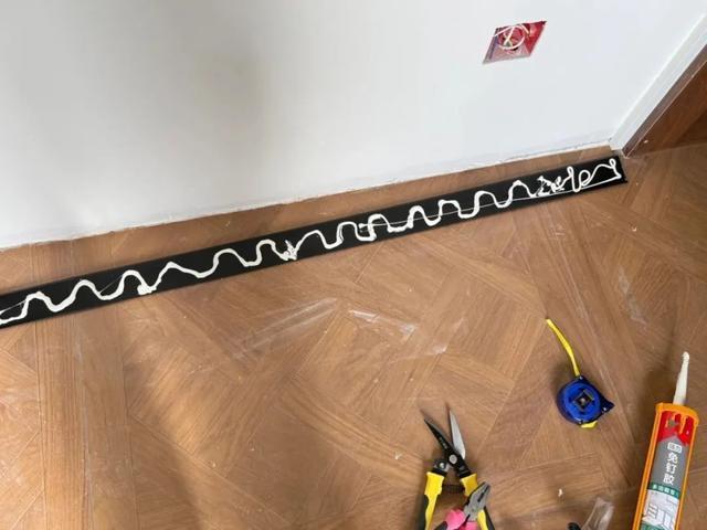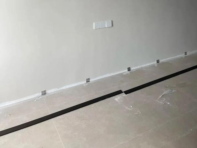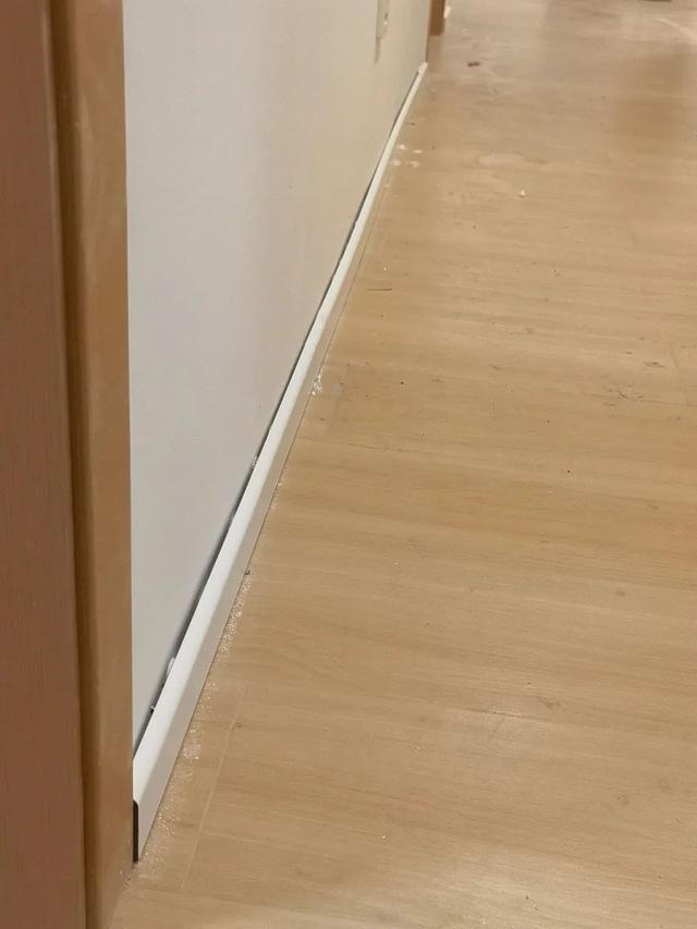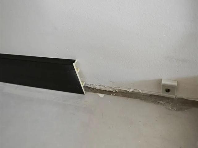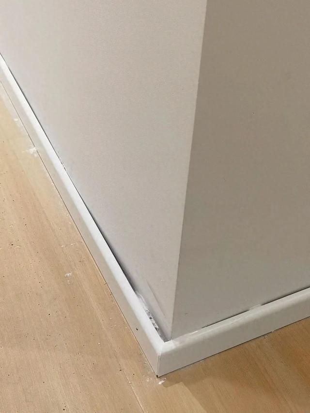 ②预留伸缩缝——踢脚线接缝处要留1-2mm的缝隙,不要顶死,避免热胀冷缩导致踢脚线拱起脱落。