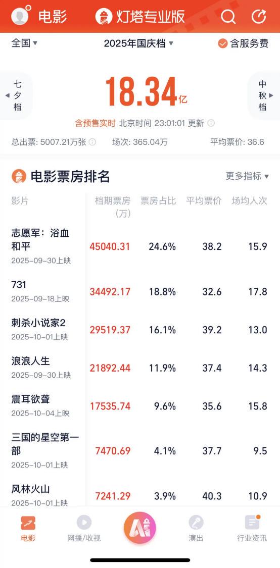 目前国庆档票房表现果真一般,总票房都还没有过20亿。
