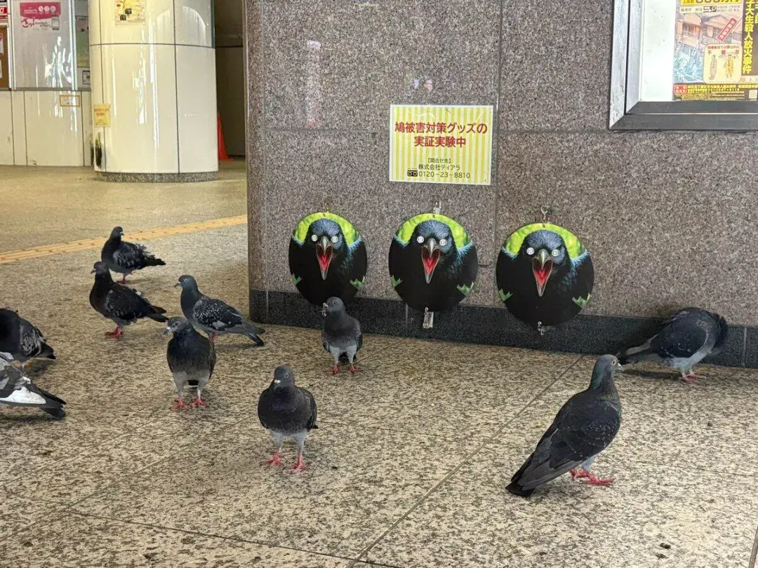 作为全球最繁忙的车站鼎东策略,新宿站不仅人流密集,也成了鸽子的热门聚集地。面对鸽粪污染和疾病传播问题,车站管理方去年10月想出了一个“妙招”:在鸽子经常出没的5个点位悬挂天敌海报。这些由文具公司专门开发的海报,上面印着目光凶猛的猫头鹰和老鹰,眼睛部分采用反光铝制材料,试图用“死亡凝视”吓退鸽子。