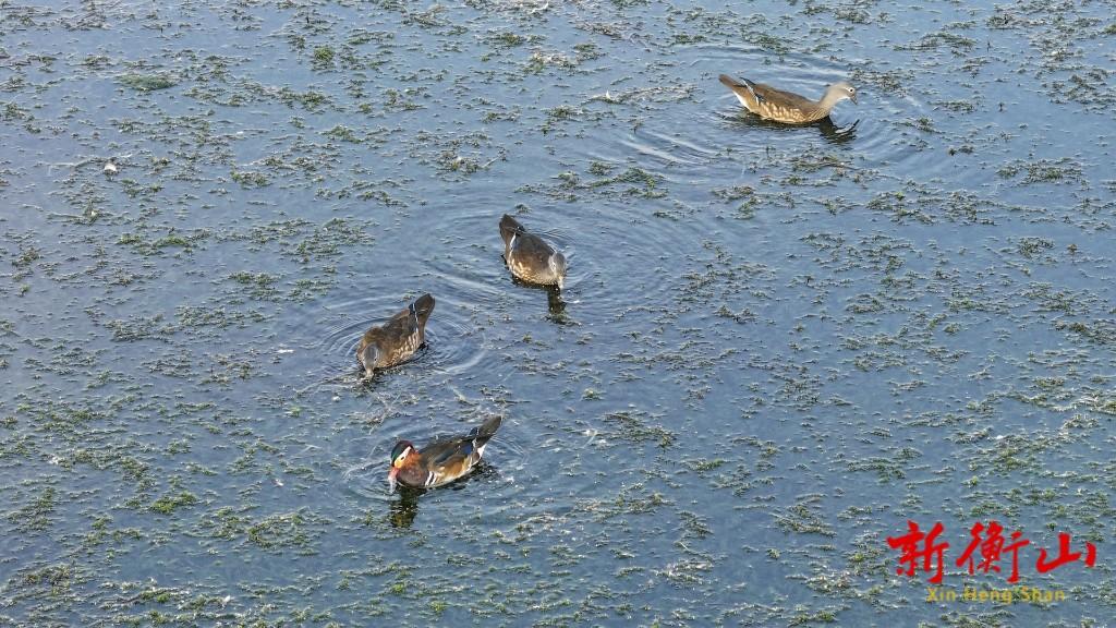 衡山萱洲国家湿地公园迎来“鸳鸯一家”(蒋鹏摄)
